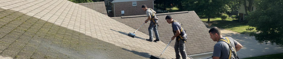 Professional roof cleaners in Lewis Center avoid aggressive scraping. They use low-pressure rinsing and, when needed, careful manual removal. This strategy extends shingle life and helps stop regrowth at the roots.